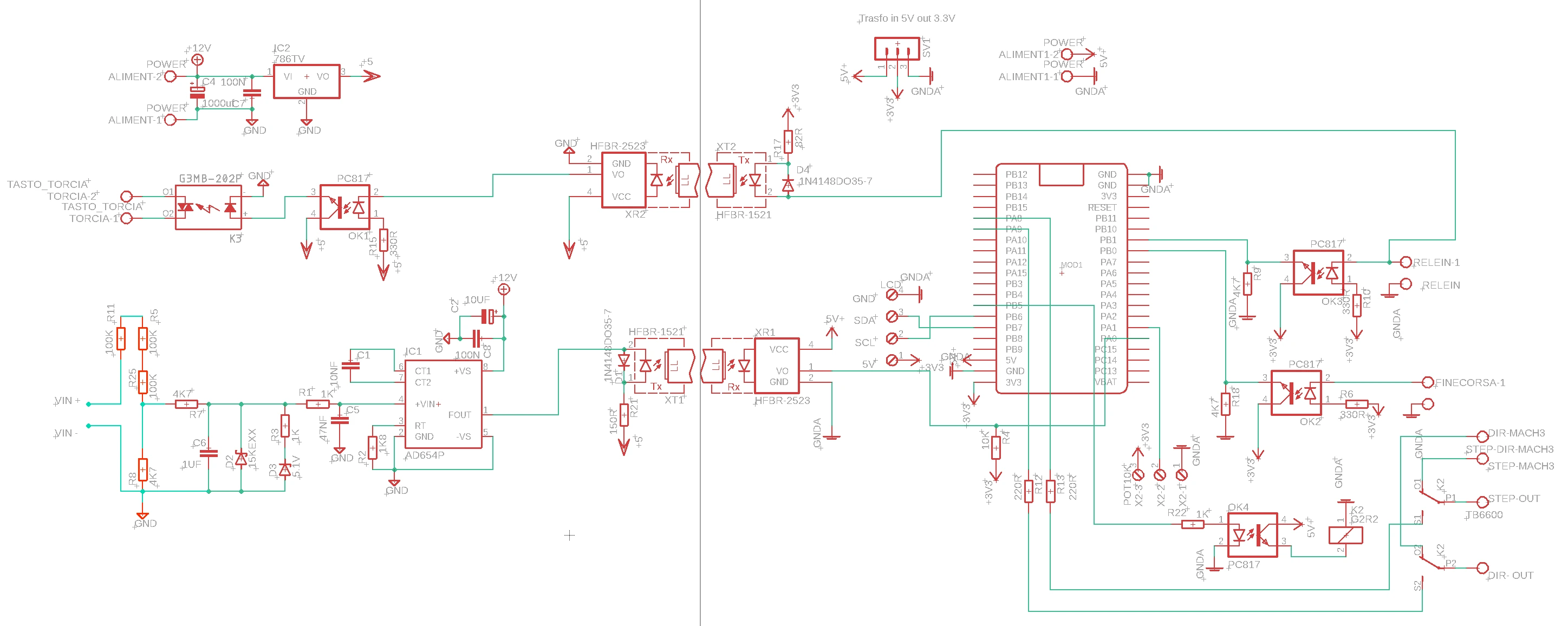 Questo progetto descrive la realizzazione di un Torch Height Controller (THC) per CNC plasma basato su STM32F103 con isolamento in fibra ottica tra due PCB.